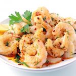 - Add garlic to butter in the baking dish. Spread shrimp in a single layer over bottom of baking dish. Top with the lemon slices. Sprinkle the top of the fish with the red pepper flakes (optional).