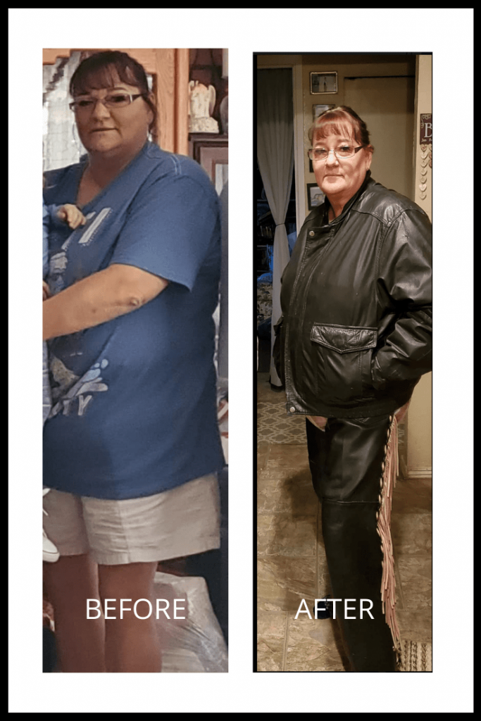 I can actually bend over and, sitting down, bend over and tie my shoes and not gasp for air or be in pain. I can run after my grandkids. I can actually sit on the back of our Harley and have space between me and my husband instead of being squished. I was able to fit into a pair of chaps that I didn't think I'd ever be able to get into.