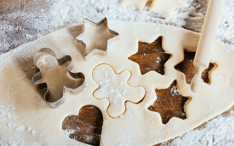 - Preheat the oven to 325 degrees and line two large baking sheets with parchment or silicone mats Using cookie cutters of choice, cut out cookies and lift carefully onto prepared baking sheets.