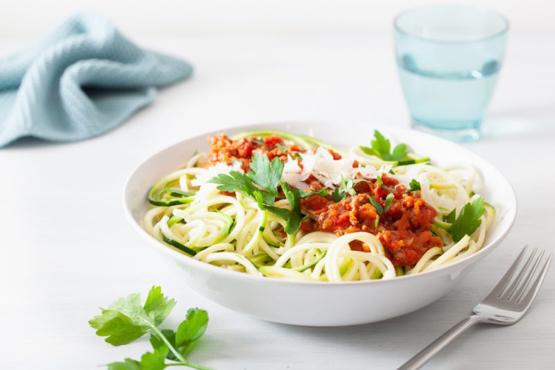 - Use a spiralizer (or mandolin or peeler) to make zucchini noodles